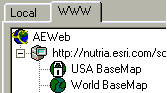 Tuleb avada WWW vahekaart ja sealsel ikoonil klõpsates avaneb ESRI enda vaikimisi pakutav kaardiserver koos kaartidega, mida sealt on võimalik saada. Selle sisu võib muutuda. Andmekogumeid, mille juures on tabalukk, ei ole käesoleval hetkel Teie arvutil lubatud kasutada. |
