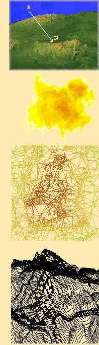 TIN moodustab otsekui sõrestiku, mille alusel saab luua reljeefi rastermudeli, mis on maapinna esitus korrapäraste punktidena. Kui rastermudel joonestada välja perspektiivi arvestavalt profiiljoontena, siis saame sellise ortograafilise kujutise, nagu on kõrvaloleval illustratsioonil näha Otepää kõrgustiku idapoole kõrgeima osa kohta kirde poolt vaadatuna. Selline viis annab reljeefi olemust päris hästi edasi, kui valida profiiljooni suhteliselt hõredalt.