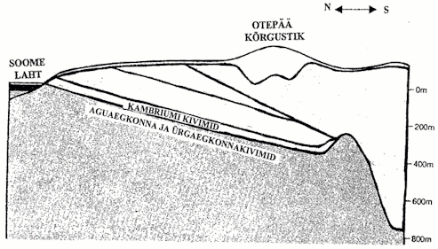 5. Märgi Eesti geoloogilist ehitust kujutavale joonisele järgmised nimetused õigesse kohta: (4 punkti)