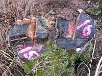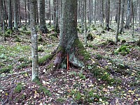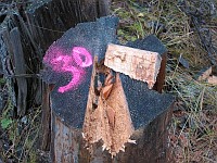 See kask (nr. 19) on langetatud röövraie käigus 2002. aastal. |  See kuusk (nr. 30) on langetatud röövraie käigus harvesteriga 2002. a. kevadsuvel. |