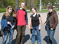 Juhendatavad noored aastarõngaste uurijad (vasakult) Kristel Kund, Ragnar Kapaun, Vivian Uibo ja Kristina Sohar Tartu Ülikoolist rahvusvahelisel puude aastarõngaste uurijate konverentsil TRACE 2007, mais 2007 Riias.