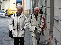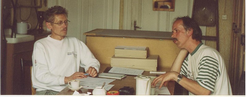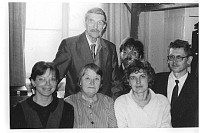 Kandidaaditöö juhendaja akad. Viktor Masing (seisab taga) mõnede kolleegide ja õpilastega. |  Baltimaade dendrokronoloogide patroon prof. D. Eckstein Hamburgi Ülikoolist (vasemal) ja Põhja-Euroopas laialdaselt kasutatava Gotlandi männikronoloogia koostaja dr. Th. Bartholin (praegu Hamburgis). |