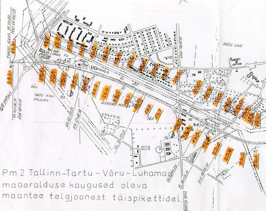 Rekonstrueeritava Ringtee skeem, ära on näidatud uue tee telg ja maanteetrassi laienemine meetrites kummalegi poole telge (oranzi taustaga numbrid).